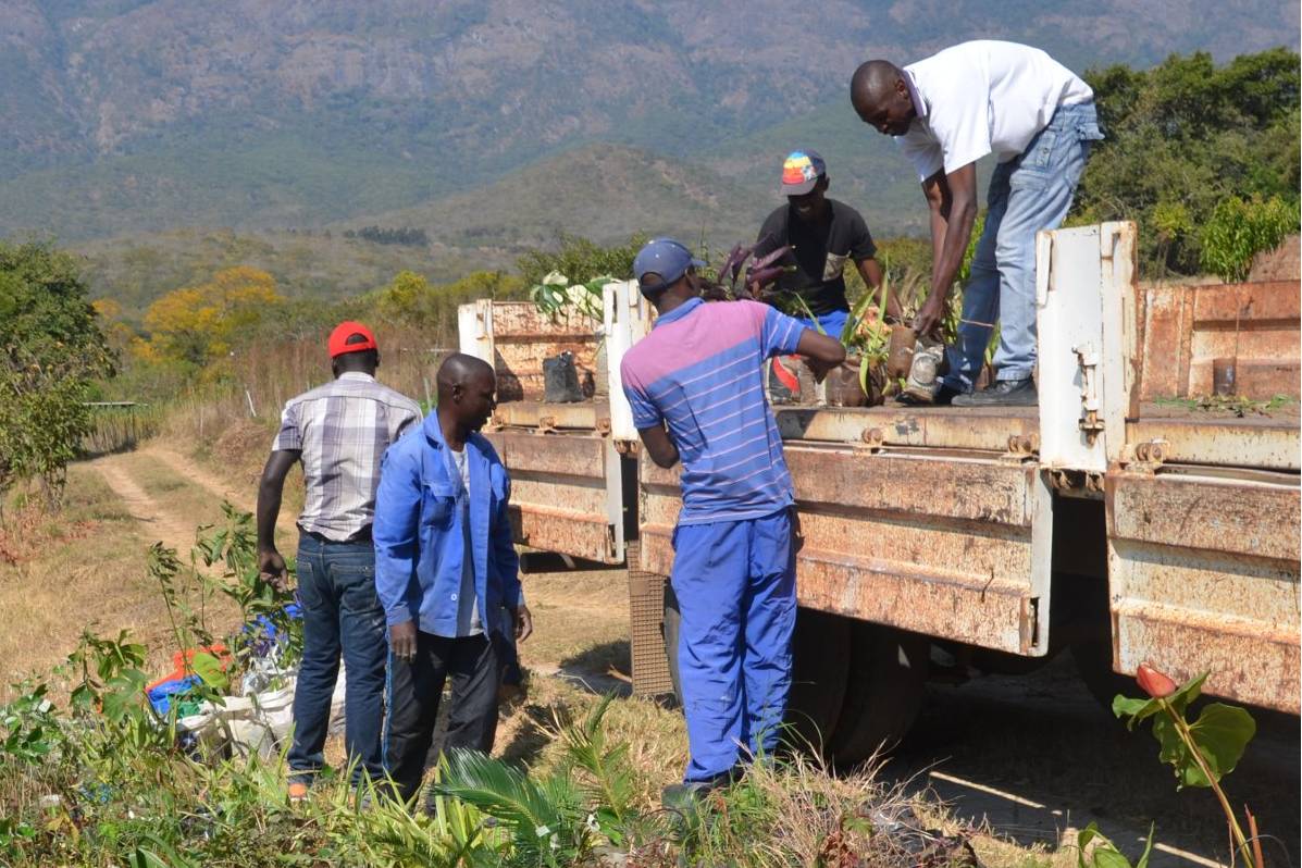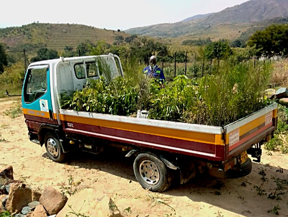Transport der Setzlinge zu einer Schule