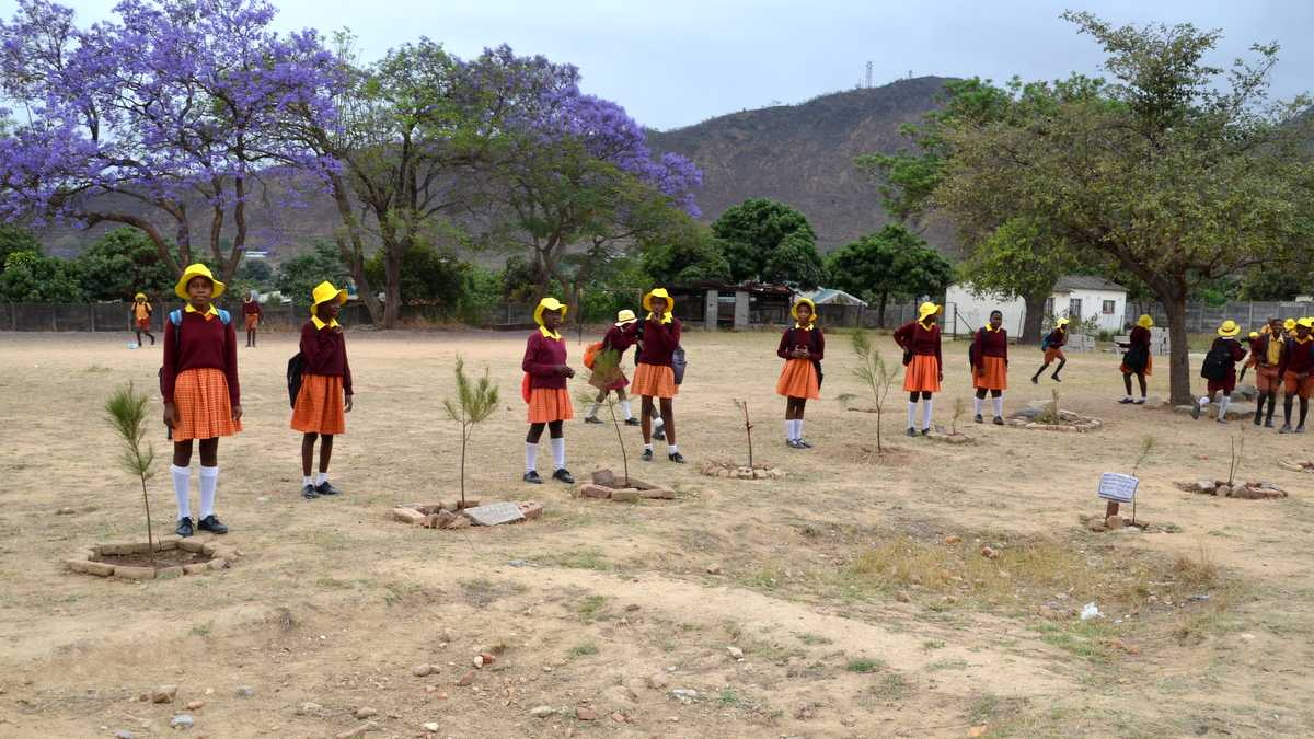 Schüler*innen der Rujeko Primary School. Hier wurden 450 Bäume gepflanzt.